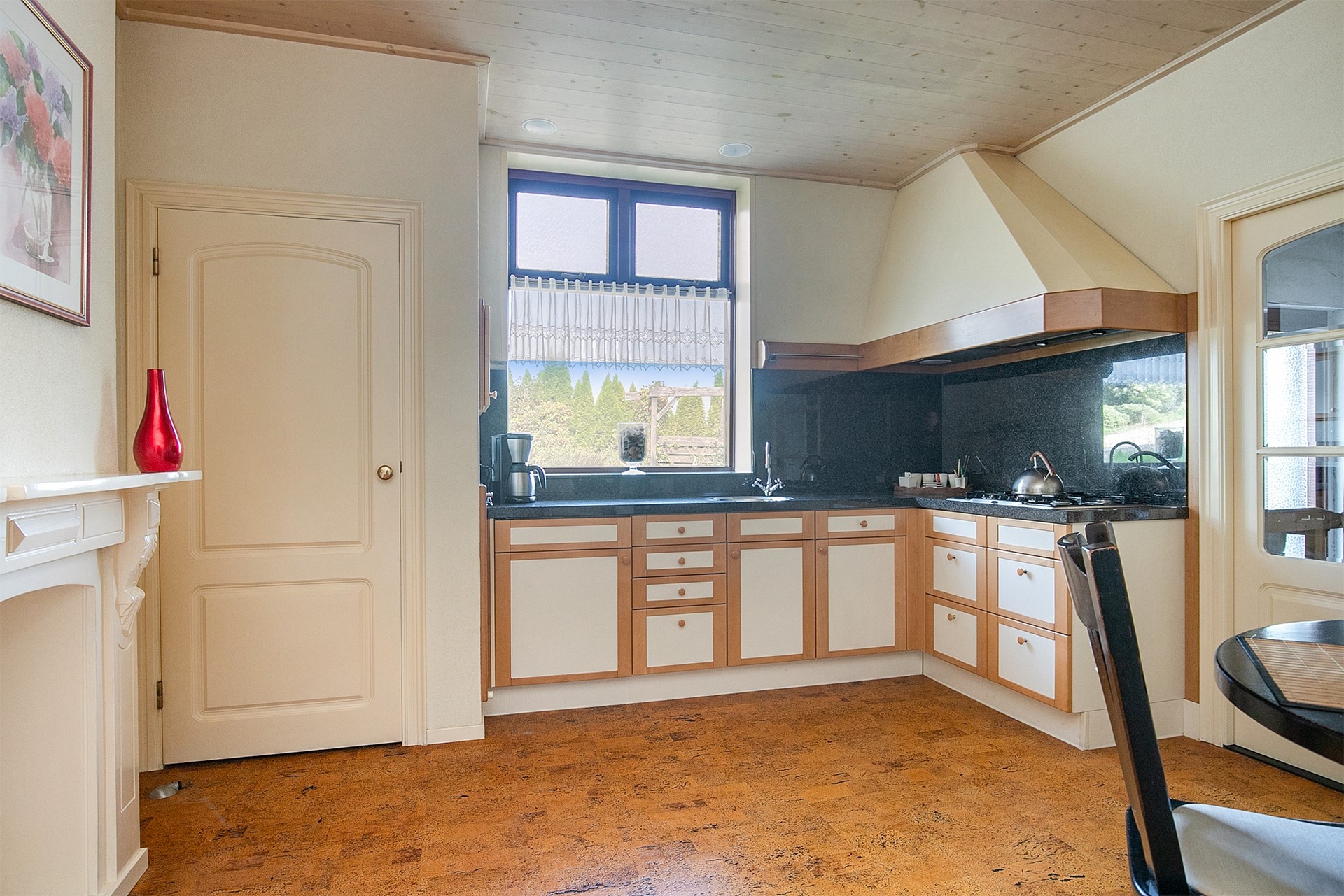 Vanuit de deel komt u in de woonkeuken, voorzien van een keukenopstelling met marmeren werkblad, 5-pitsgasfornuis, afzuigkap en koelkast. In de keuken is nog de originele schouw aanwezig en de vloer is bedekt met een kurken vloer. De ruime kelder is vanuit de woonkeuken te bereiken.