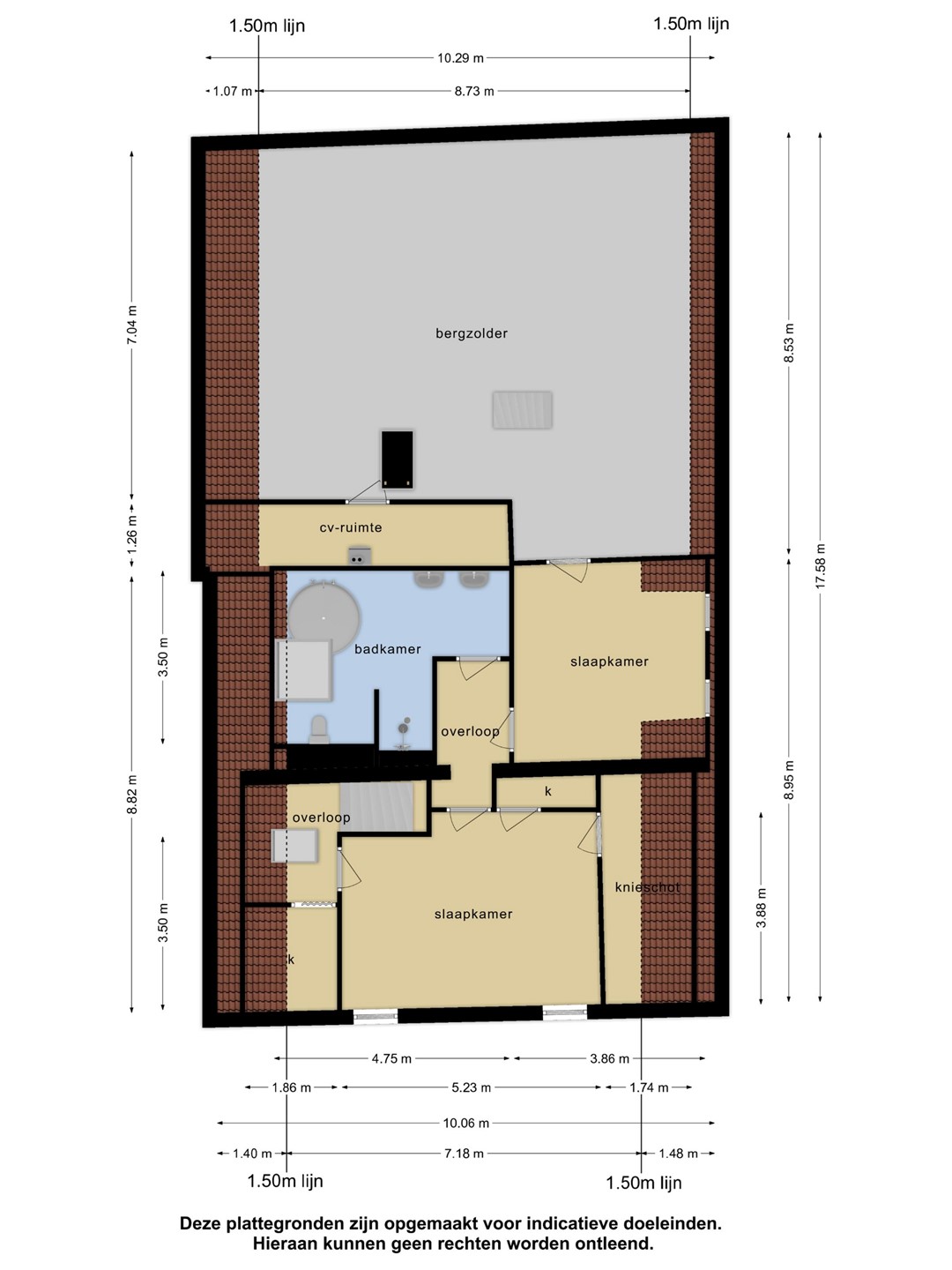 De ruimte boven het achterste gedeelte van de woning is nog geheel naar eigen wens in te richten. Te denken valt bijvoorbeeld aan extra slaapkamers of een werkruimte. In deze ruimte is tevens een afgesloten ruimte voor de c.v.-installatie. Daarnaast is er via een trap nog een extra ruimte.