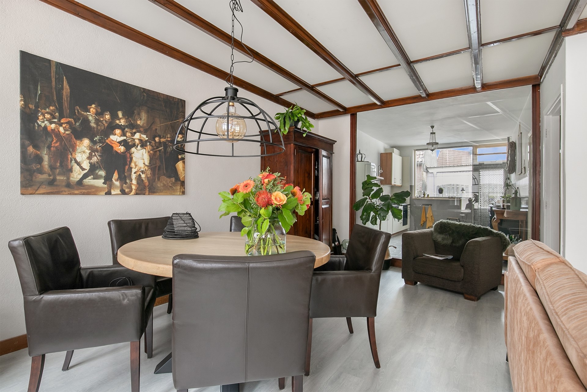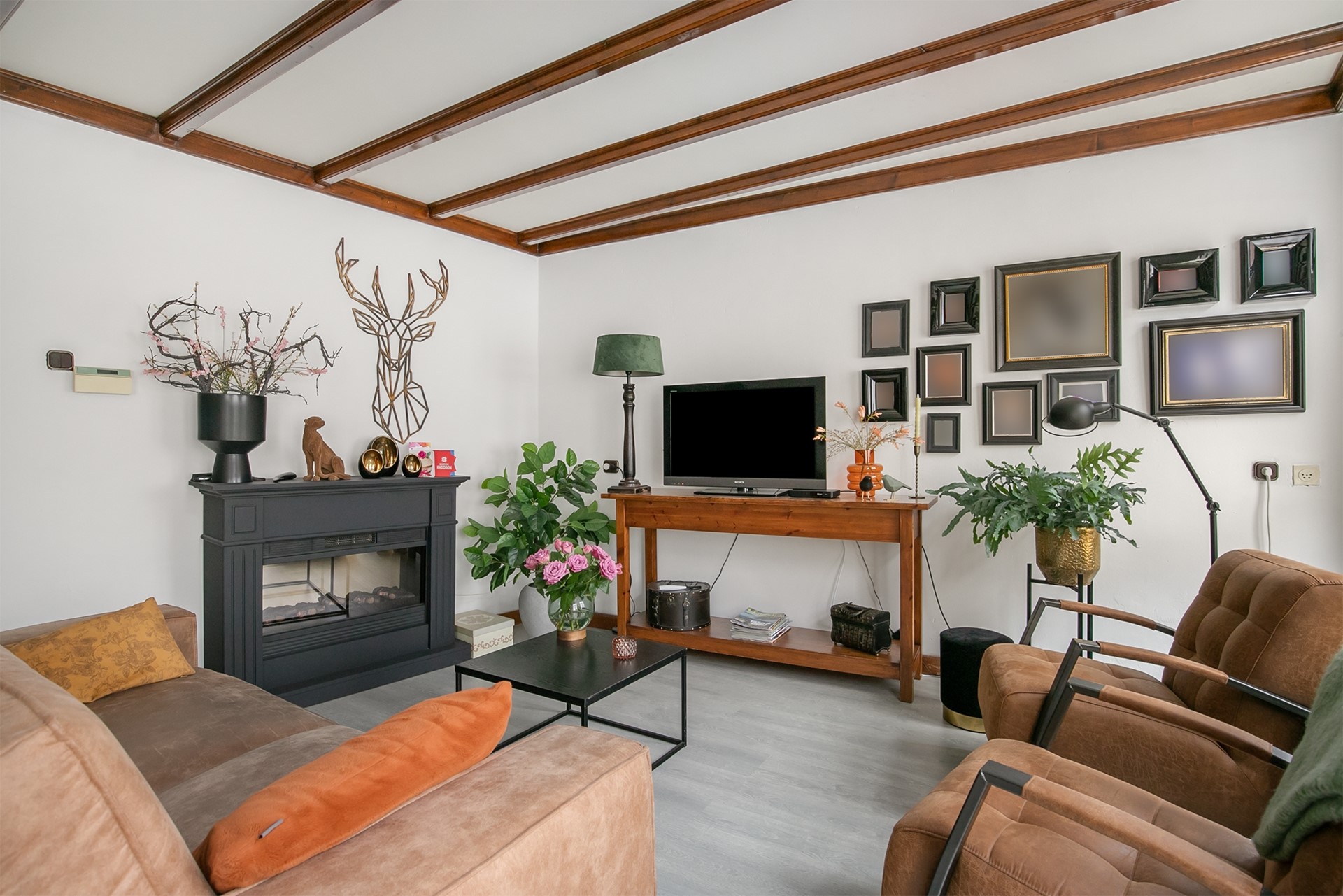 De hal biedt toegang tot de gezellige woonkamer met balkenplafond, laminaatvloer en veel ramen waardoor er een aangename lichtval ontstaat. Vanuit de hal hebt u ook toegang tot de keuken, die is voorzien van een keukenopstelling met wasbak, gasfornuis, afzuigkap, oven en vaatwasser. Tussen de woonkamer en keuken bevindt zich een glazen scheidingswand. Indien gewenst is deze te verwijderen, waardoor er een grote woonruimte ontstaat.
