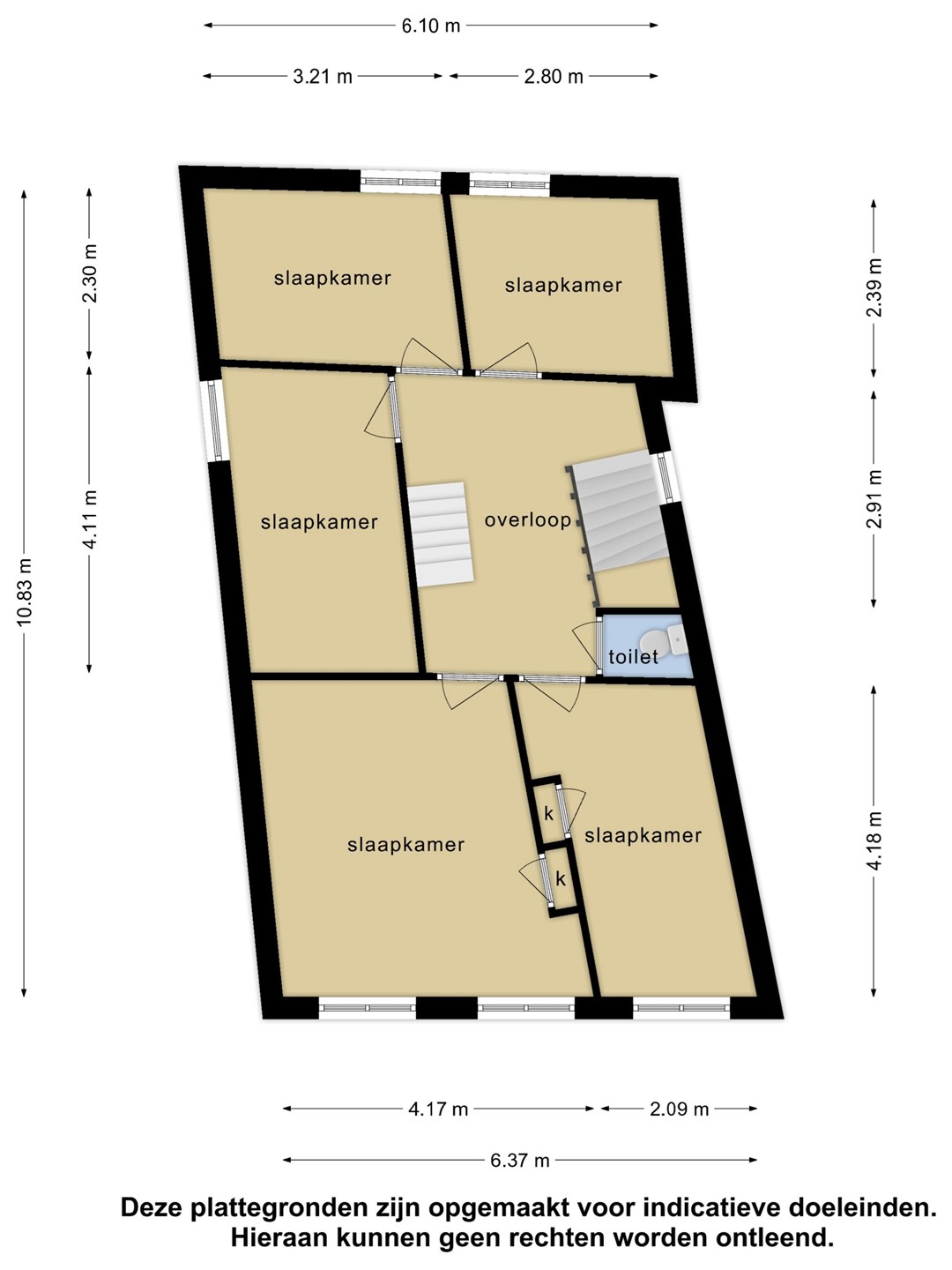 Vanuit de eerste verdieping komt u via de trap op de overloop van de 2e verdieping. Deze biedt toegang tot het toilet en de 5 slaapkamers van diverse maten. 2 slaapkamers beschikken over een vaste kast.