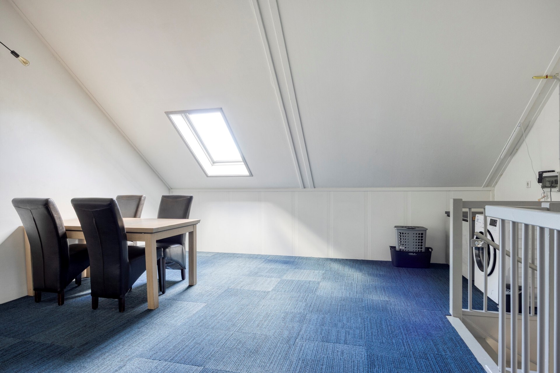 Via de vaste trap bereik je de zolder. Ook hier is alles netjes afgewerkt en valt meteen de ruimte op. Dankzij het dakraam is er volop daglicht. Deze verdieping biedt talloze mogelijkheden. Denk aan een vierde slaapkamer, een werkkamer of een hobbyruimte. Daarnaast vind je hier de witgoedopstellingen, de cv ketel en de omvormer van de zonnepanelen. Achter de knieschotten is bovendien verrassend veel opbergruimte, ideaal voor alle spulletjes die je niet dagelijks nodig hebt.