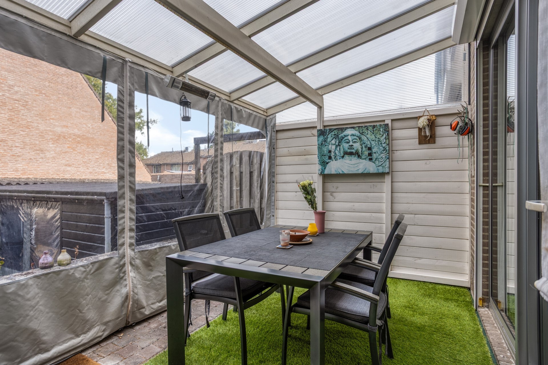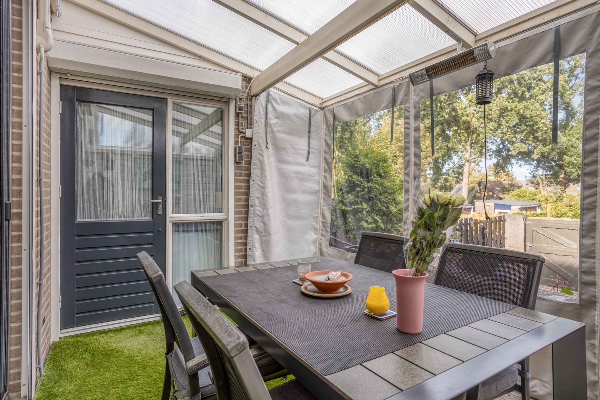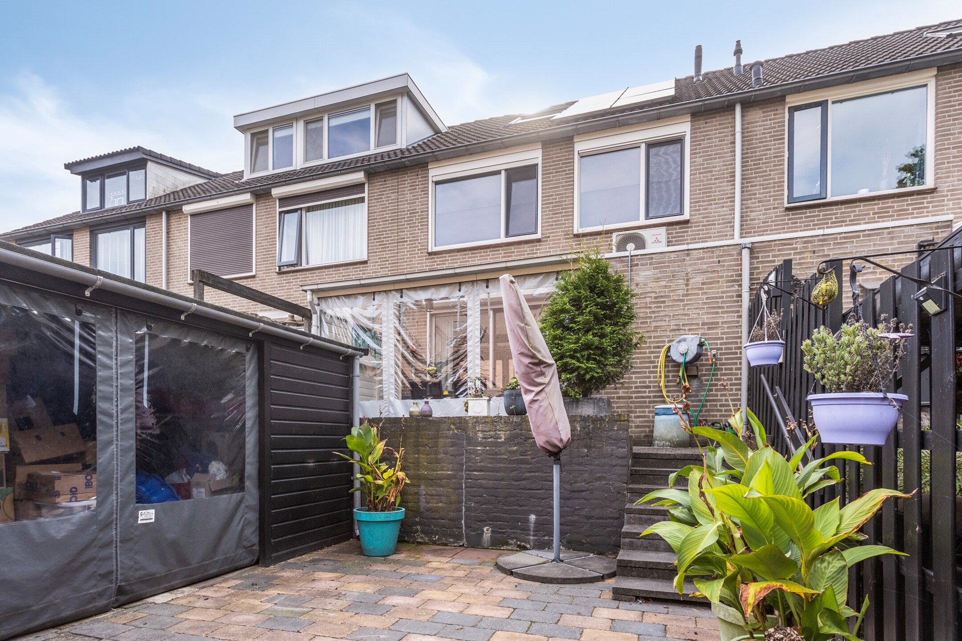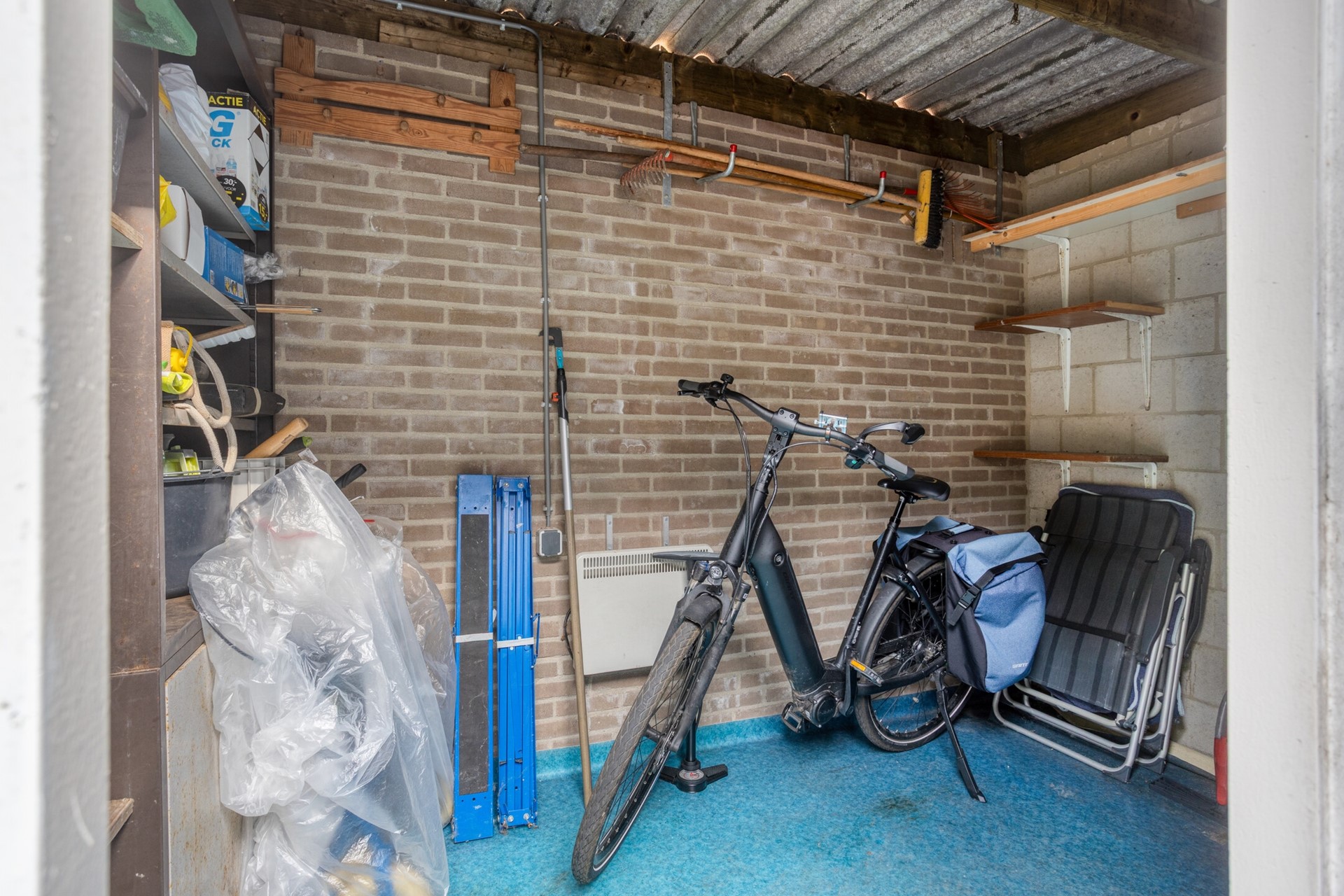 De achtertuin is perfect voor wie geen ingewikkelde tuinonderhoud wil, maar toch graag buiten zit. Met het overdekte terras aangrenzend aan de woning kun je het hele jaar door beschut buiten zitten. Terwijl het lager gelegen terras weer uitnodigt voor een lounge set omringd door een paar kleurrijke bloempotten. Zowel de vrijstaande stenen berging als de houten overkapping bieden alle ruimte om je tuinmeubels, fietsen en gereedschap overzichtelijk op te bergen.