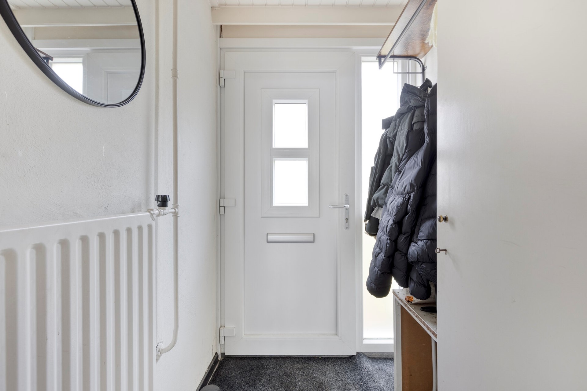 Je betreedt de woning via de ruime entree met meterkast, garderobe en toegang tot de woonkamer. De doorzonwoonkamer is verrassend ruim dankzij de grote ramen aan zowel de voor- als achterzijde, waardoor er volop natuurlijk licht binnenvalt. De ruimte is makkelijk in te delen met een gezellige zithoek aan de voorzijde en een eethoek richting de tuin. Via de woonkamer bereik je de hal met trapopgang naar de eerste verdieping en het toilet.