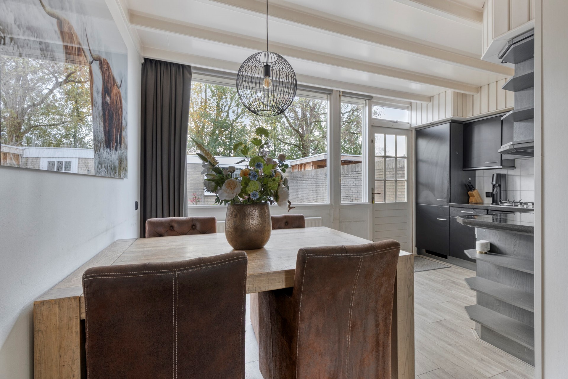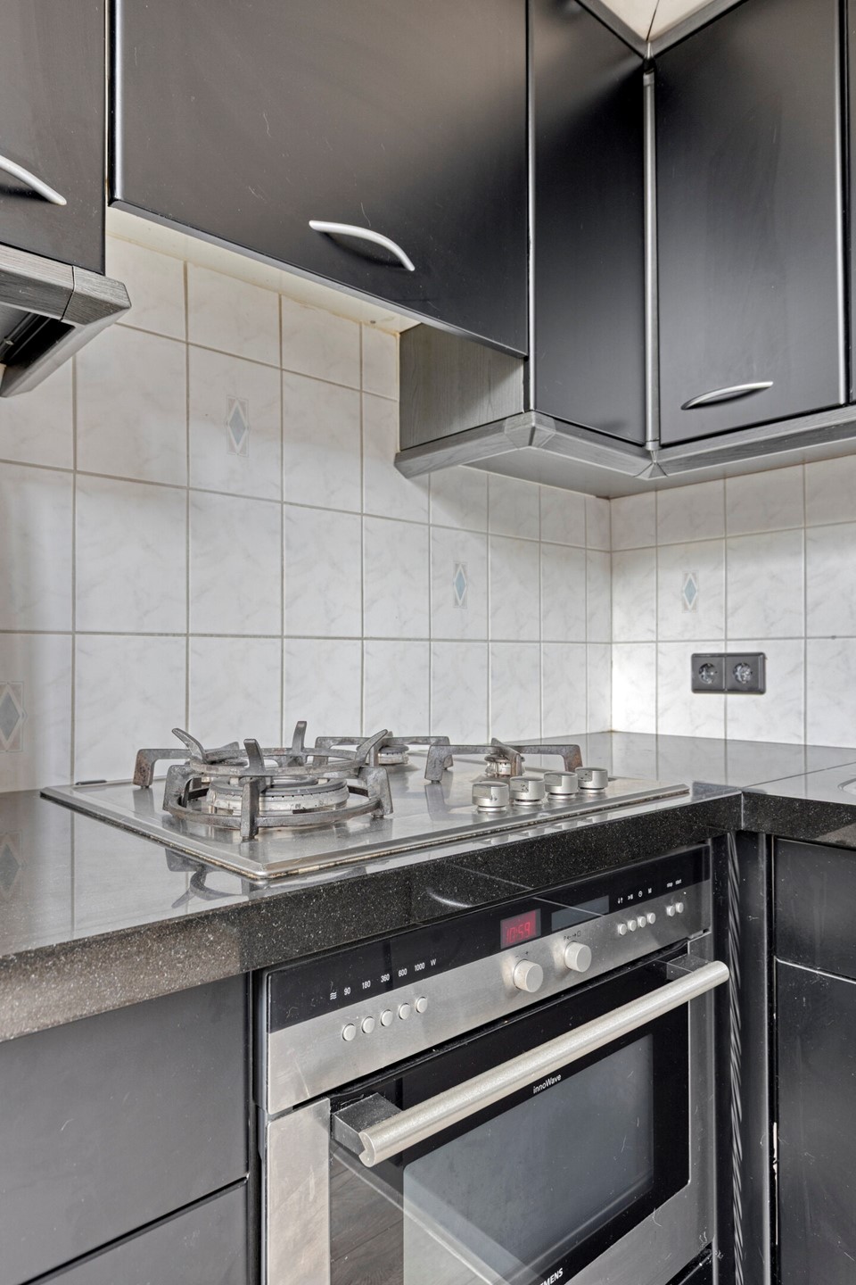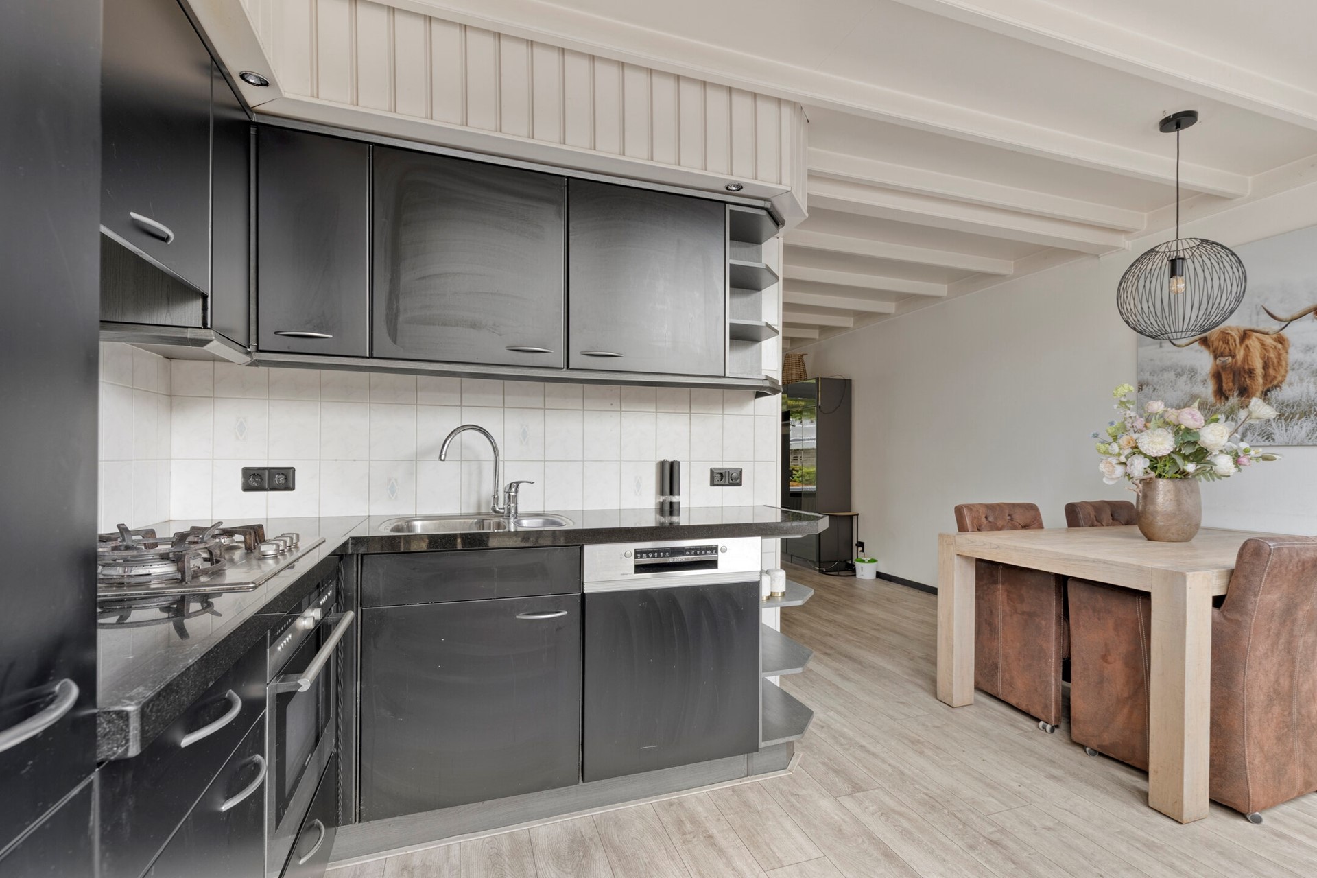 Aan de achterzijde bevindt zich de open keuken, voorzien van alle gemakken: een gaskookplaat, oven, koelkast, vaatwasser en voldoende kastruimte. Vanuit de keuken is er direct toegang tot de achtertuin.