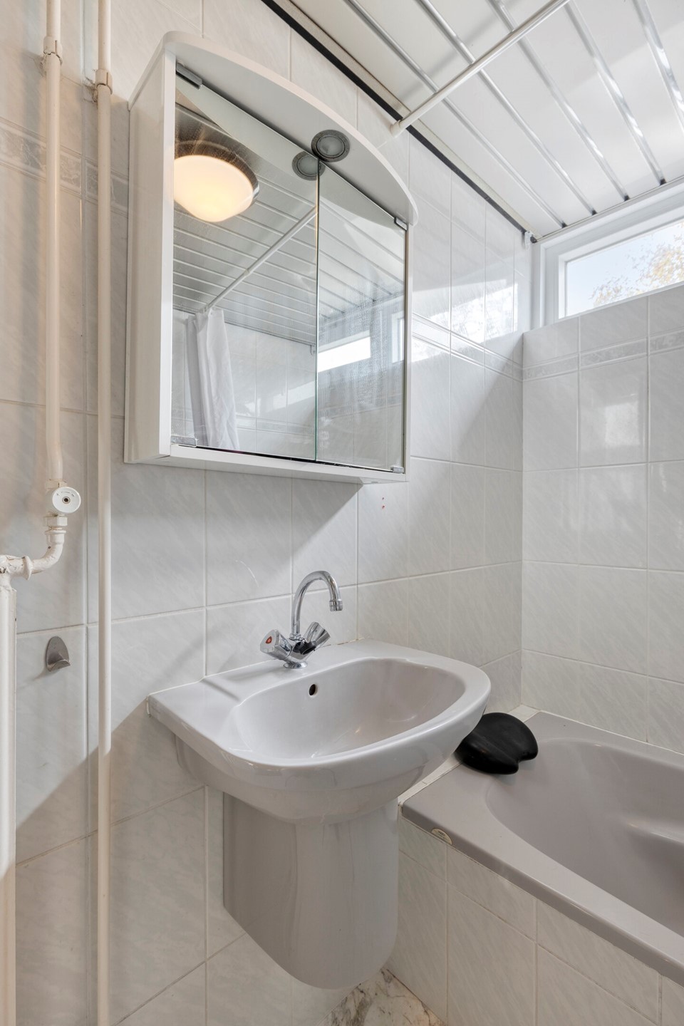Op de eerste verdieping bevinden zich twee ruime slaapkamers en de badkamer. De slaapkamers zijn licht en praktisch ingedeeld, met voldoende plek voor een tweepersoonsbed en kastruimte. De badkamer is compleet uitgerust met een ligbad met douche, toilet en wastafel: alles wat je nodig hebt op één plek.