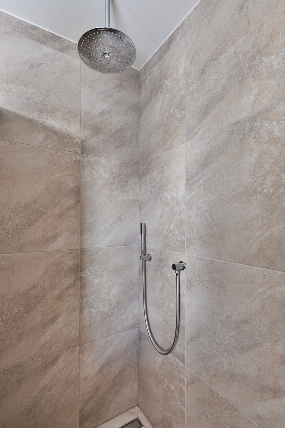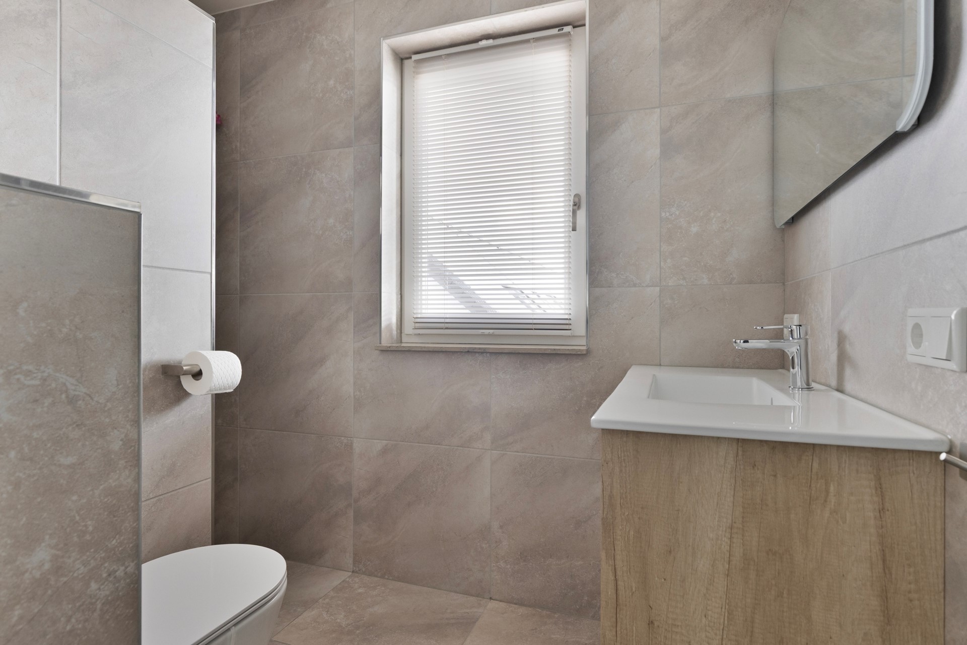 Op de eerste verdieping vind je twee slaapkamers, waarvan één met een dakkapel en één met een dakraam en een op maat gemaakte kastenwand. Daarnaast is er een tweede badkamer met inloopdouche, wandcloset en wastafel. In de technische ruimte bevinden zich de WTW-unit, lucht-/ waterwarmtepomp, omvormer zonnepanelen en de boiler. De gehele verdieping is netjes afgewerkt met een stijlvolle PVC-vloer.