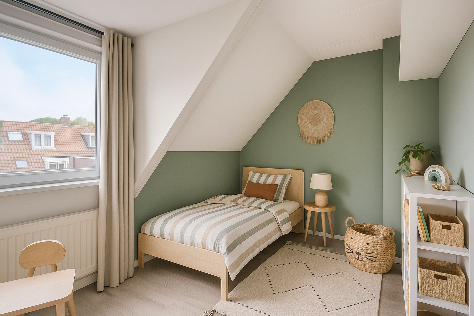 Met een vaste trap bereik je de tweede verdieping. Hier tref je een kleine overloop met bergruimte en een derde slaapkamer. Deze kamer kan nog vergroot worden, waardoor de zolder veel potentie biedt. Ook hier is dubbel glas aanwezig. Via een klein luik in het plafond is nog extra, zeer bescheiden bergruimte beschikbaar.